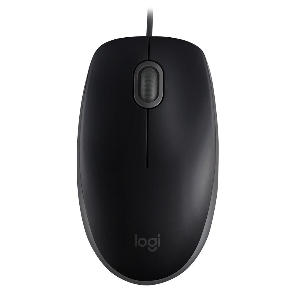 Mouse com fio USB da Logitech, modelo M90, com sensor óptico de 1000 DPI, design ambidestro ergonômico de tamanho padrão, três botões (esquerdo, direito e roda de scroll clicável), cabo de 1,8 m, ideal para uso cotidiano em escritório, estudo ou internet.