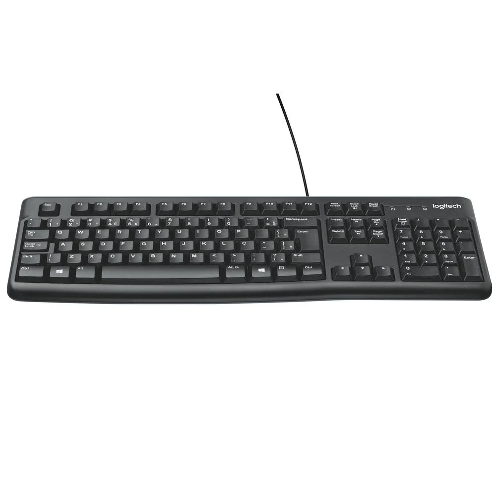 Teclado com fio Logitech K120, resistente, silencioso e confortável para digitação prolongada. Layout ABNT2 e conexão USB Plug & Play.